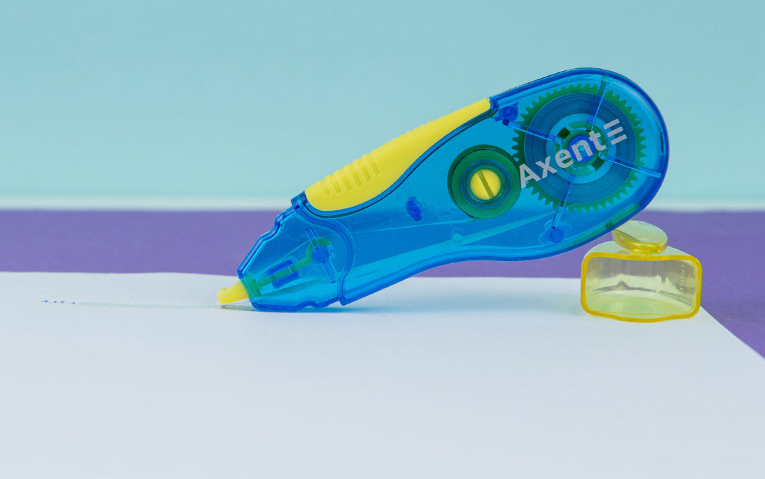 Машина часу ще не була винайдена, щоб повернутися назад і виправити всі помилки. Проте у кожного, хто пише від руки чи заповнює важливі документи, є нагода скористатись її «міні аналогом» – стрічковим коректором. Він залишає ледь помітний білий слід та допомагає виправити написане, створити нову історію на папері. Пропонуємо ознайомитися ближче зі стрічковими коректорами Axent, і пройти шлях практичного використання разом.