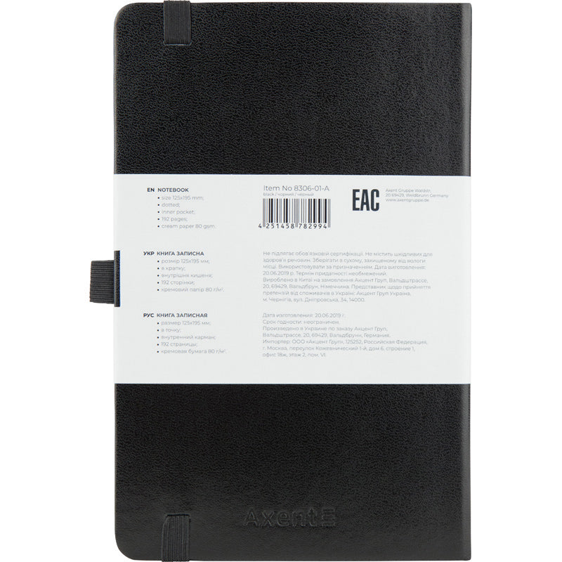 Notes Axent Partner 8306-01-A, 125*195, 96 kartek, kropka, czarny