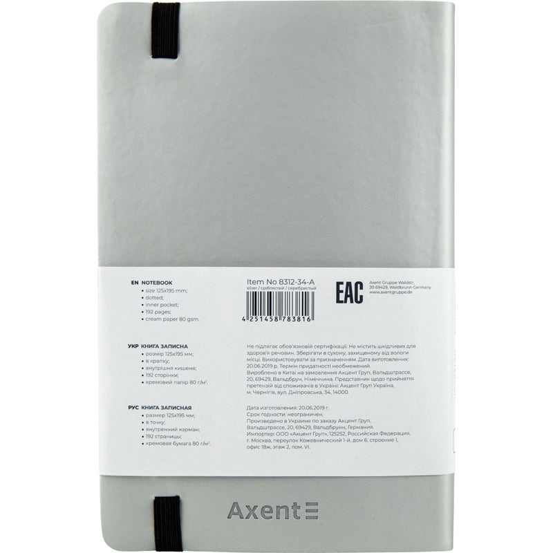 Notes Axent Partner Soft 8312-34-A, 125*195, 96 kartek, kropka, srebrzysty