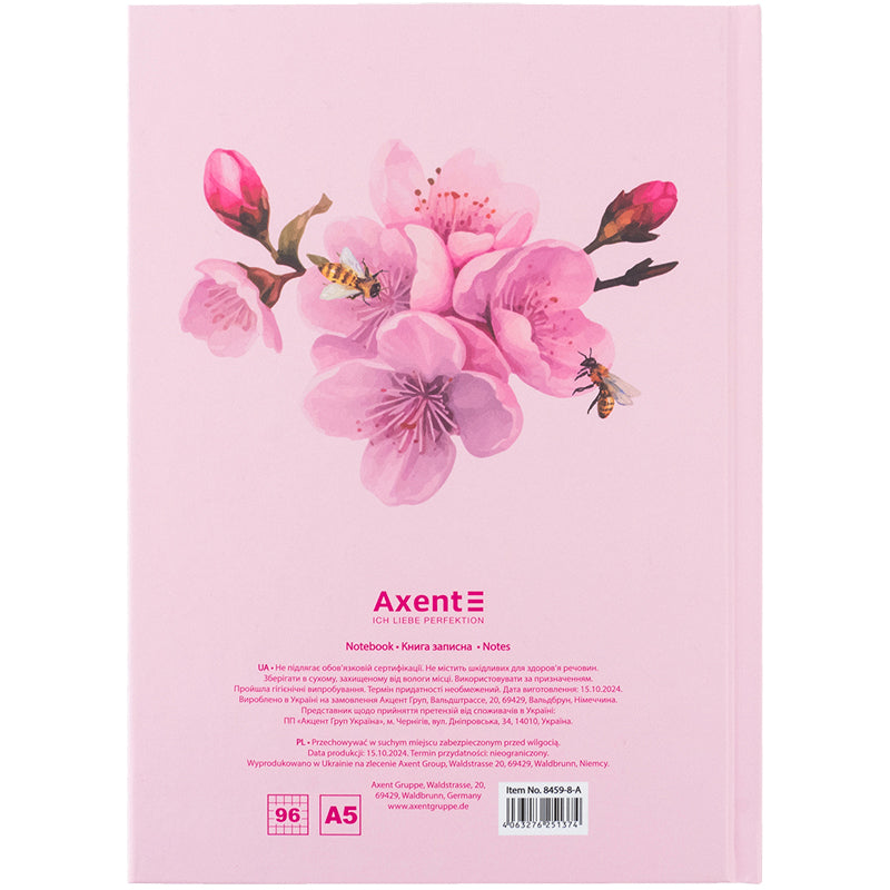 Notebook Axent Bloom 8459-8-A, А5, 96 sheets, squared, hard cover