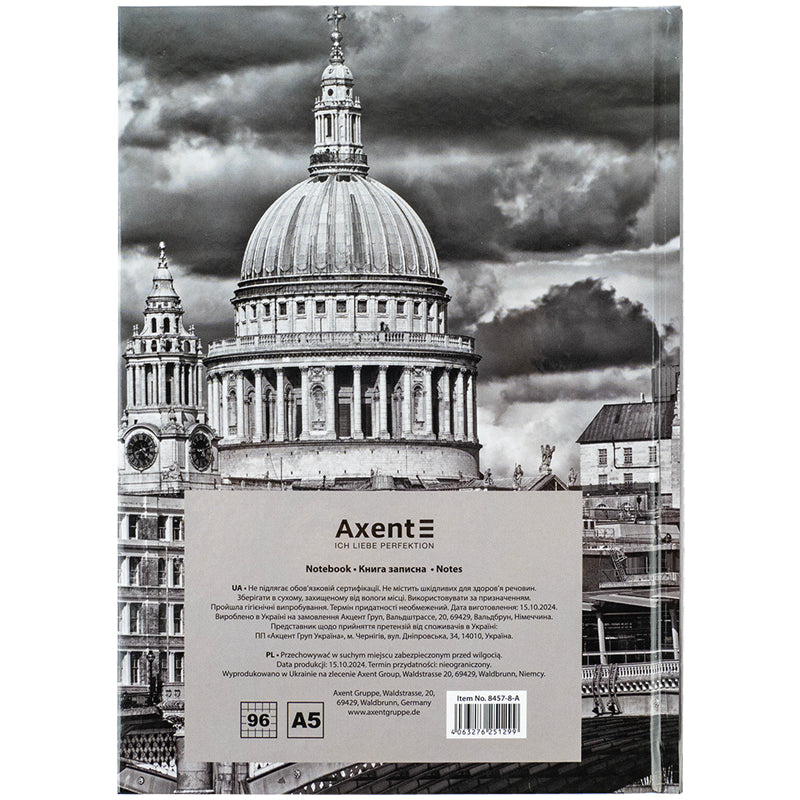 Notebook Axent R&B Bus 8457-8-A, А5, 96 sheets, squared, hard cover