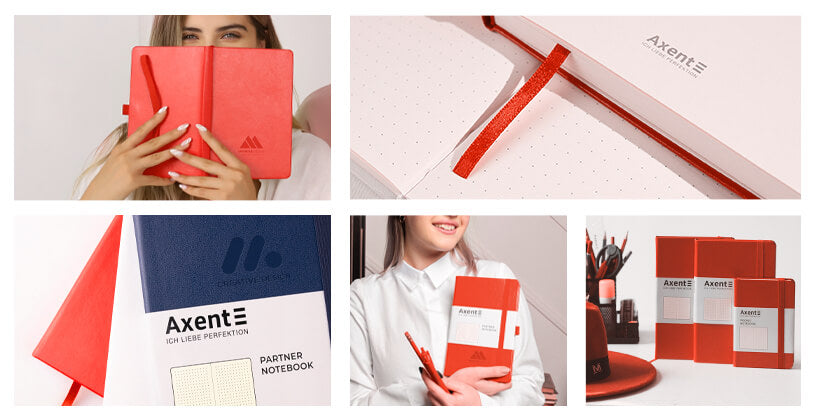 Branding – umieszczenie logo na tygodniku lub notesie Axent – efektowny i znaczący element stylu korporacyjnego. Tygodniki Axent – doskonała podstawa do tłoczenia Twojego logo. Wyróżniają się nienagannym klasycznym wyglądem, wysoką europejską jakością i różnorodną paletą okładek.